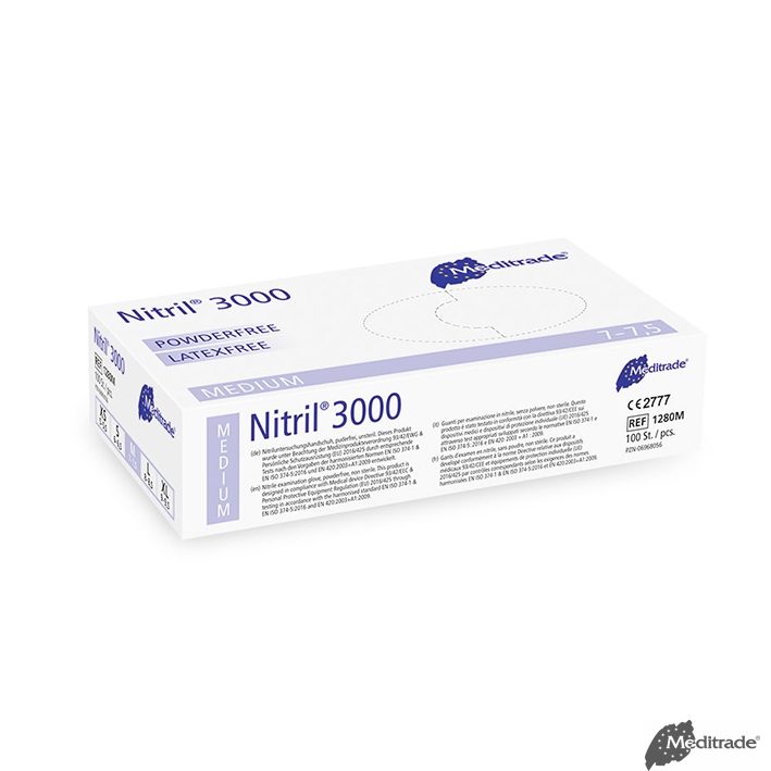 Der Nitril® 3000 ist ein latexfreier Einmalhandschuh aus Nitrilbutadienkautschuk (NBR). Das Material ist nicht nur sehr beständig, sondern passt sich der Hand bereits nach kürzester Zeit wie eine zweite Haut an und garantiert somit ermüdungsfreies Arbeiten. Die Polymerinnenbeschichtung ermöglicht ein müheloses Anziehen. Beidhändig passend, mit Rollrand, weiß, mikrogeraut.