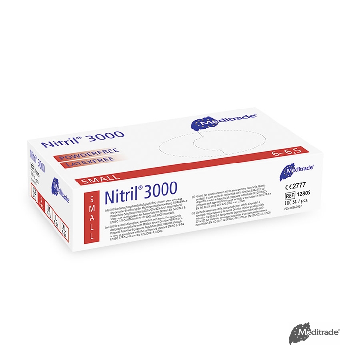 Der Nitril® 3000 ist ein latexfreier Einmalhandschuh aus Nitrilbutadienkautschuk (NBR). Das Material ist nicht nur sehr beständig, sondern passt sich der Hand bereits nach kürzester Zeit wie eine zweite Haut an und garantiert somit ermüdungsfreies Arbeiten. Die Polymerinnenbeschichtung ermöglicht ein müheloses Anziehen. Beidhändig passend, mit Rollrand, weiß, mikrogeraut.